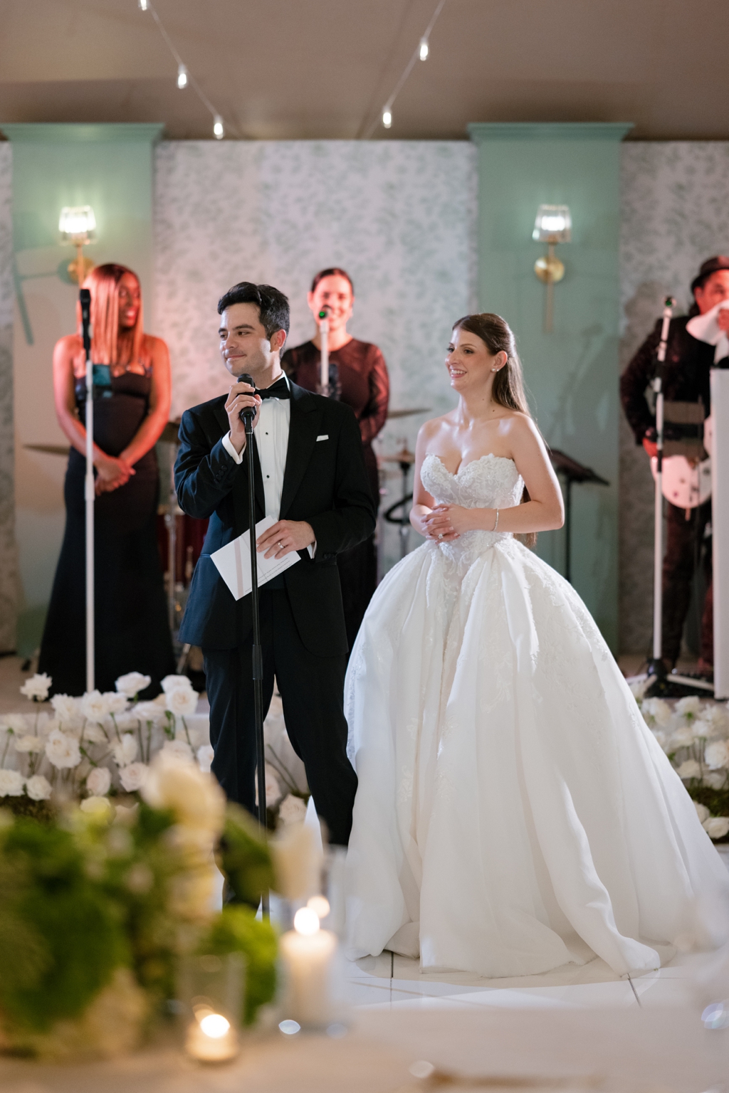 This stunning celebration was filled with beautiful florals and elegant vibes. Simply Events Design did an incredible job with florals, the combination of whites and greens created an elegant atmosphere that perfectly suited the couple’s style.