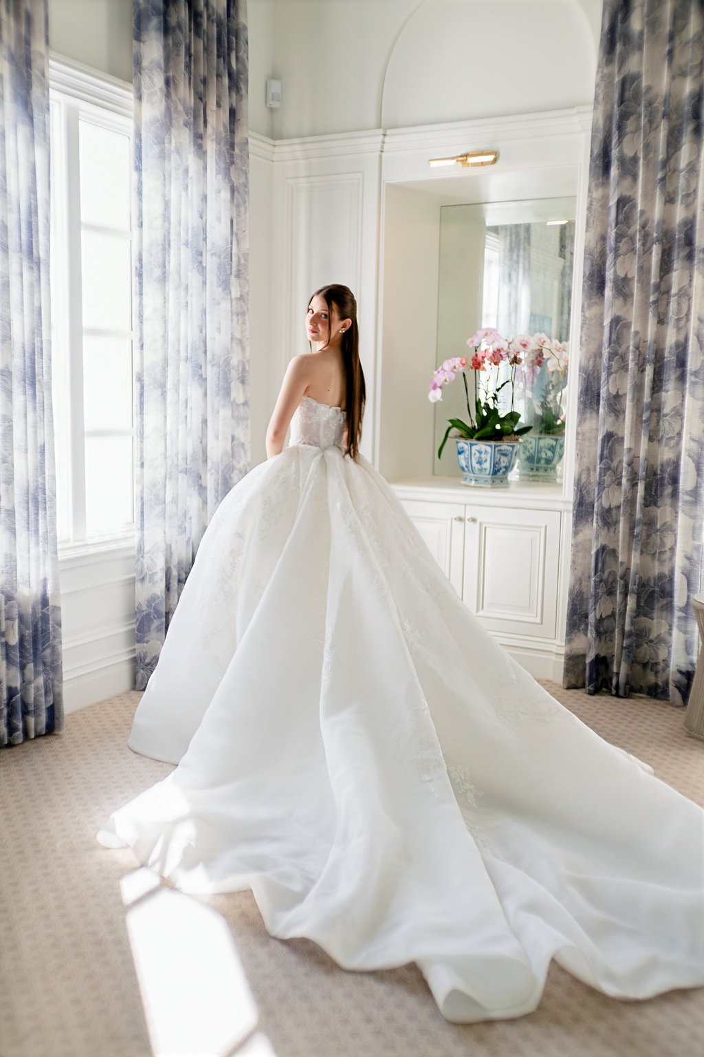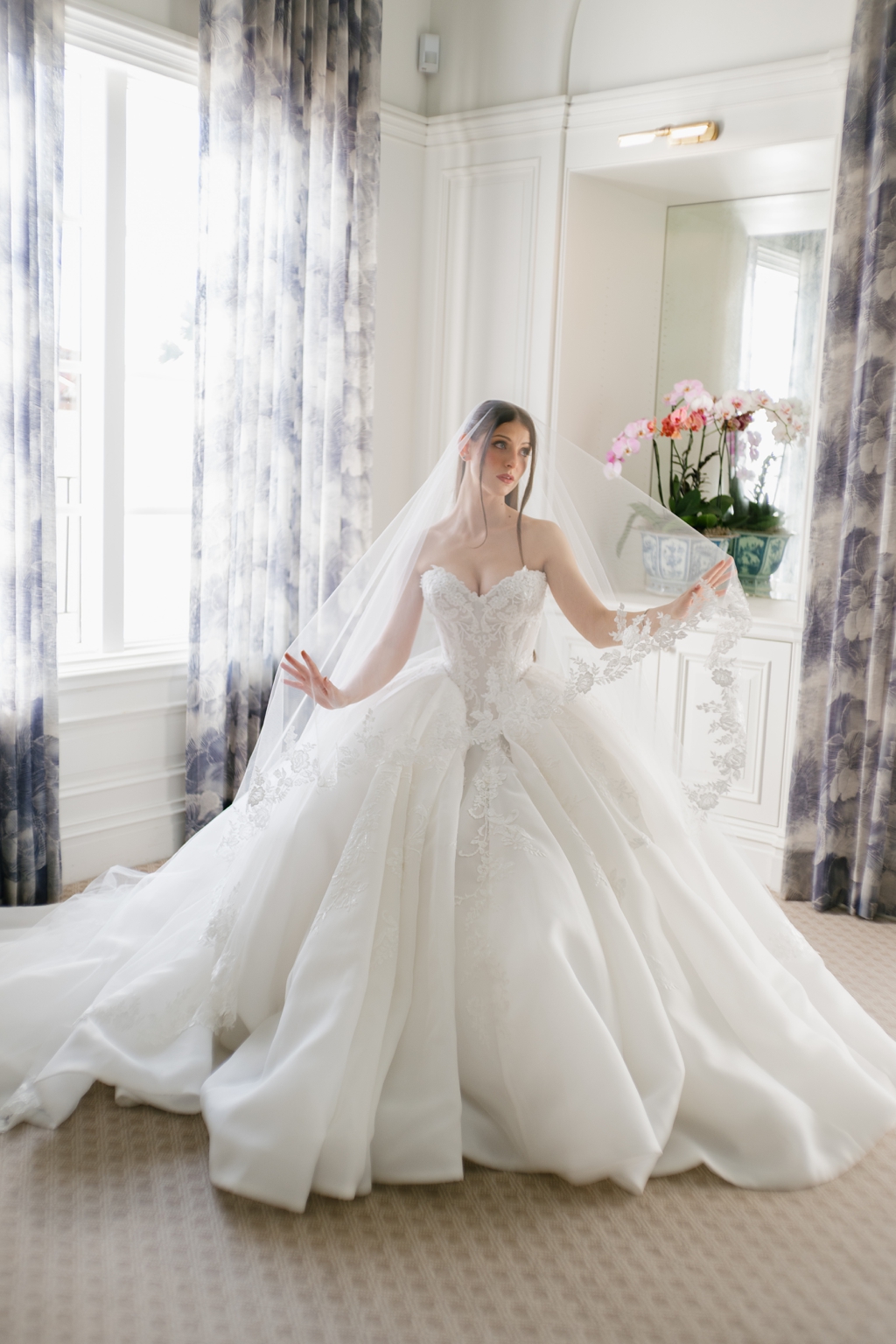 Emma & Nick Bathed in soft natural light at the beautiful Breakers in Palm Beach, the bride’s look was the definition of timeless elegance. She wore a sleek satin gown that flowed effortlessly into a dramatic train. A sheer veil added a romantic softness, catching the light as it draped delicately around her shoulders. Her […]