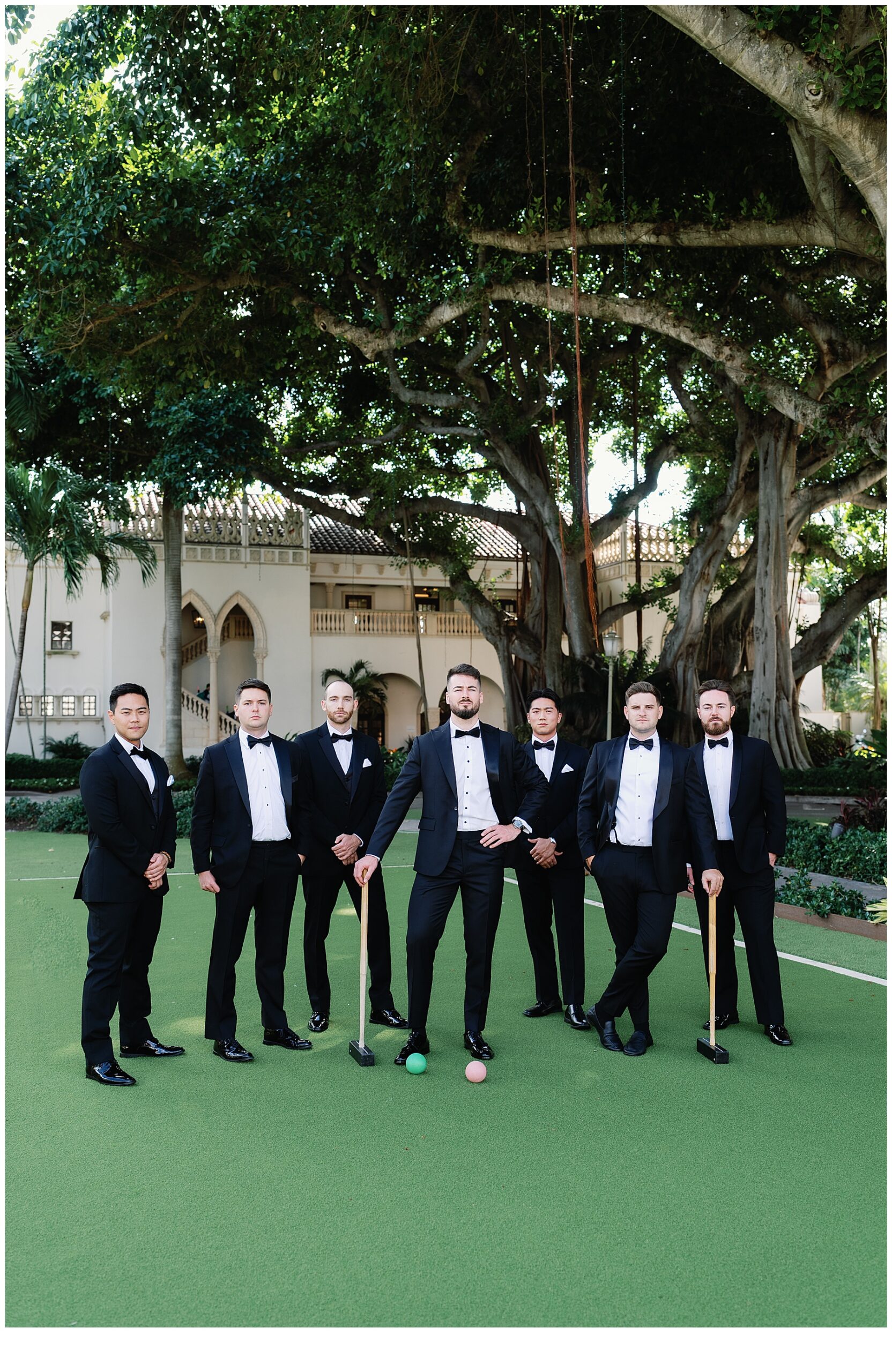 Set beneath towering banyan trees and surrounded by historic architecture this wedding was the definition of timeless elegance with a modern edge. The day unfolded on lush green grounds where classic black tie style met effortless romance creating a setting that felt both grand and intimate.
