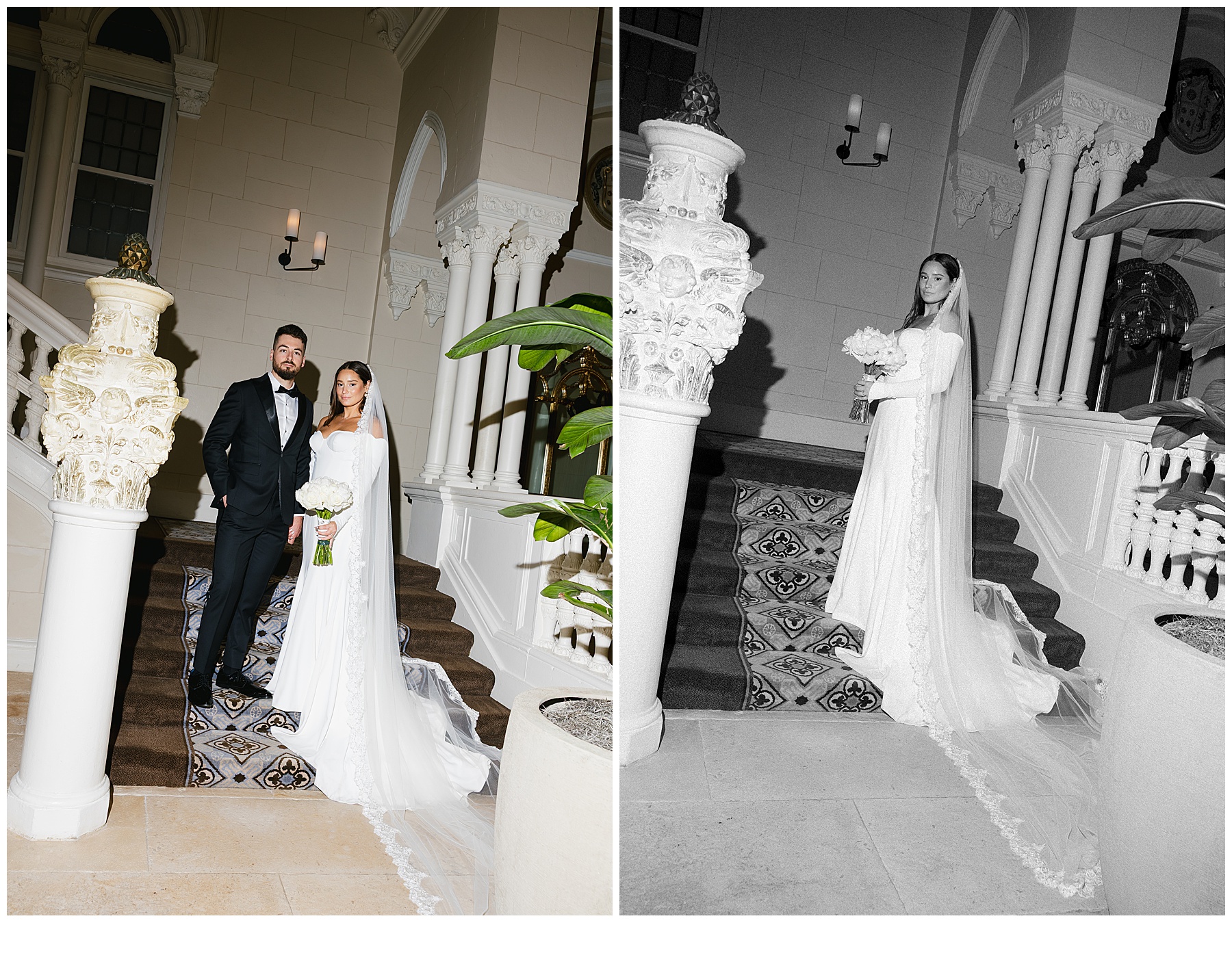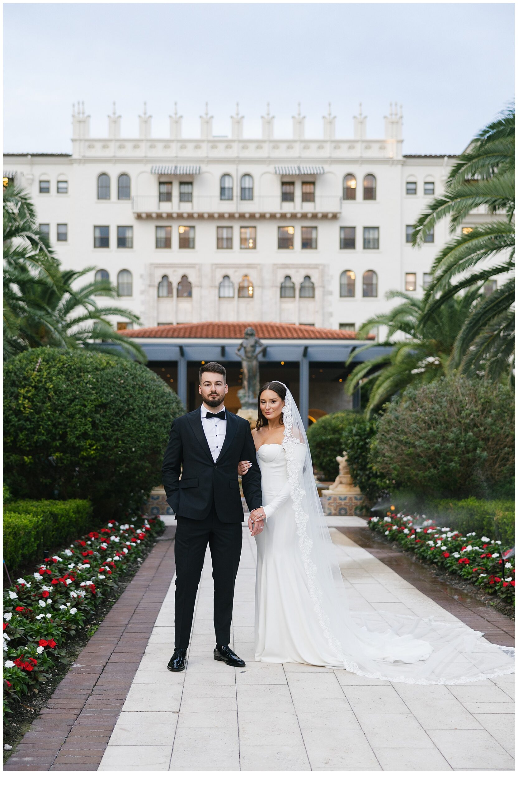 Emma & Nick Bathed in soft natural light at the beautiful Breakers in Palm Beach, the bride’s look was the definition of timeless elegance. She wore a sleek satin gown that flowed effortlessly into a dramatic train. A sheer veil added a romantic softness, catching the light as it draped delicately around her shoulders. Her […]