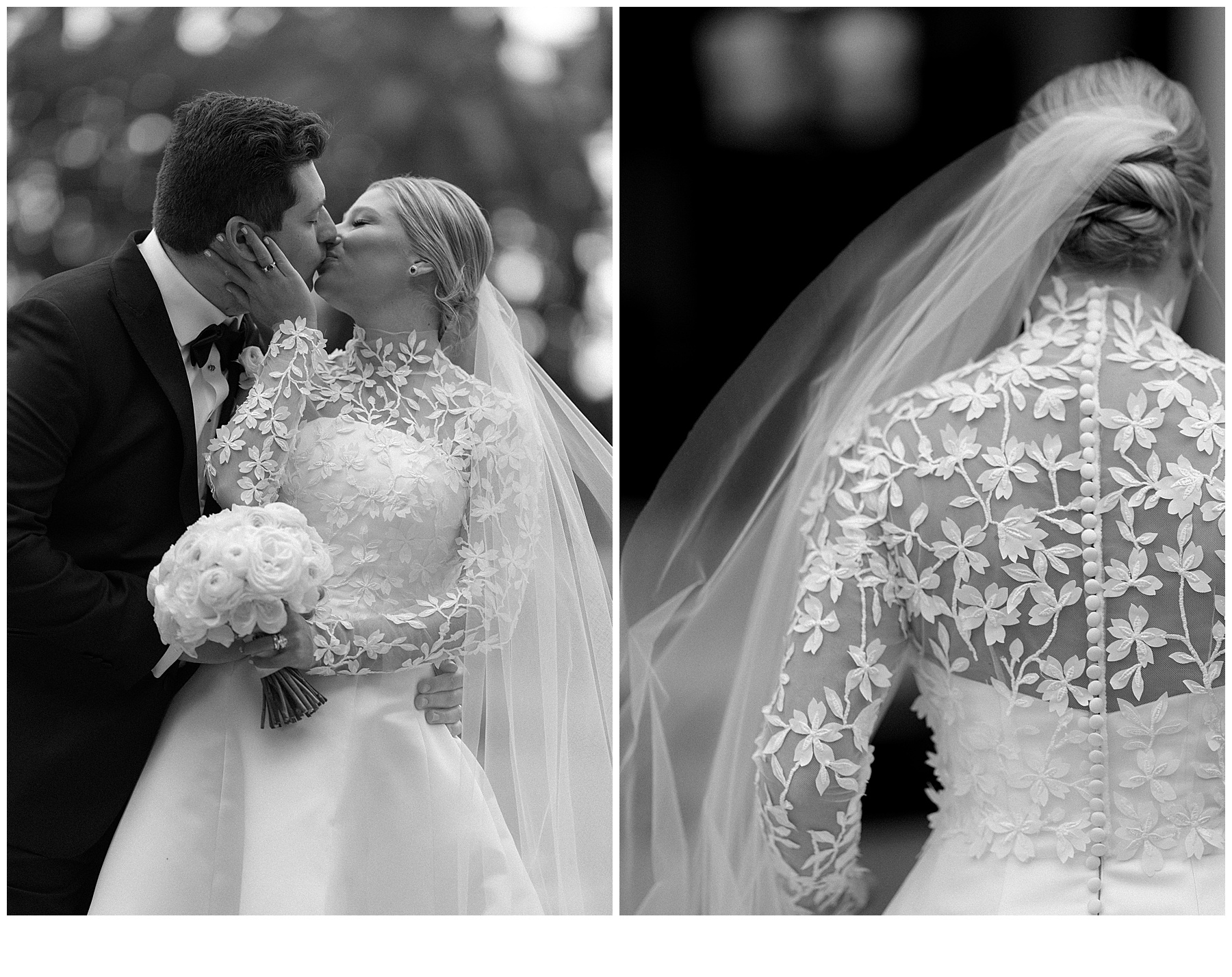 The bride wore a breathtaking gown featuring intricate lace detailing and delicate floral appliqué, a perfect complement to the classic sophistication of the venue. The groom looked timeless in a black tuxedo, and together they embodied effortless elegance, poised, joyful, and deeply in love.